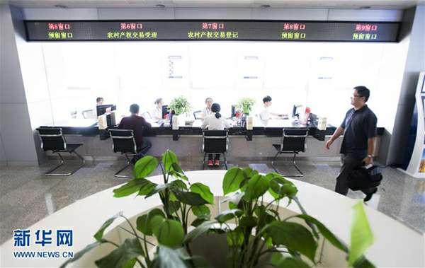 办事人员在武汉农村综合产权交易所窗口办理业务(9月11日摄)。 新华社记者 肖艺九 摄